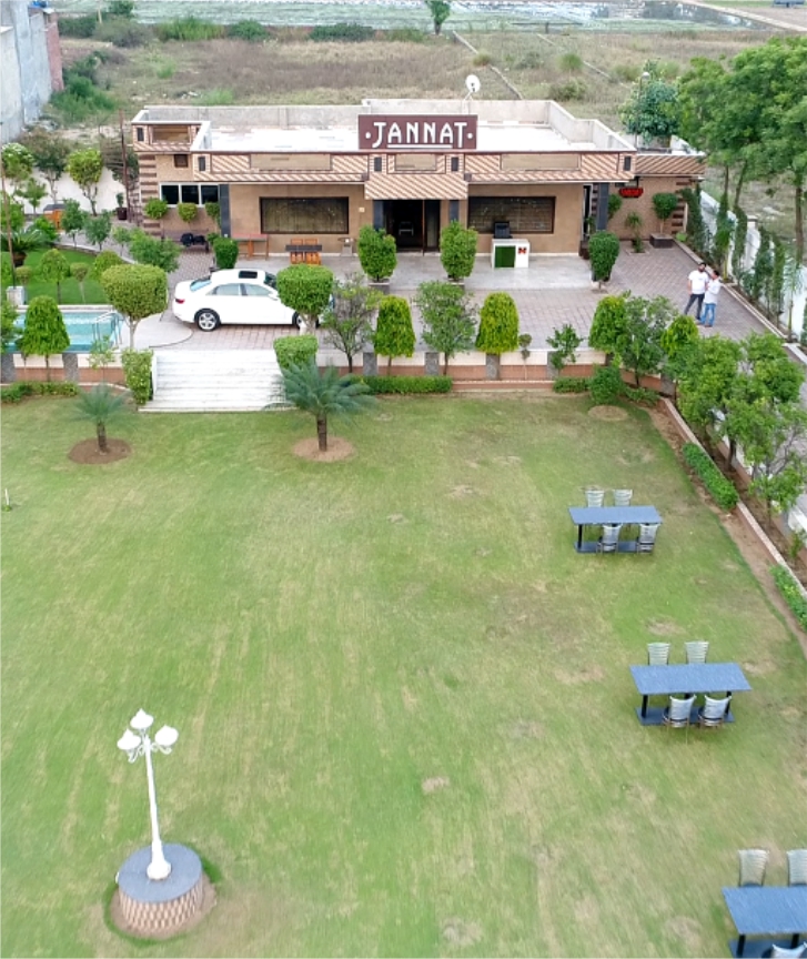 Jannat Villa is synonymous with timeless luxury. The sophisticated and aesthetic colour palettes coupled with textured finishing and unparalleled interiors of the villa offer an inimitable confluence of grace and epitomizing beauty adding incredible value to all your occasions. Our interior space is modern, clean and well-appointed with a mesmerizing ambiance.